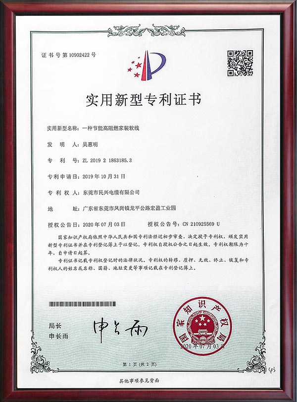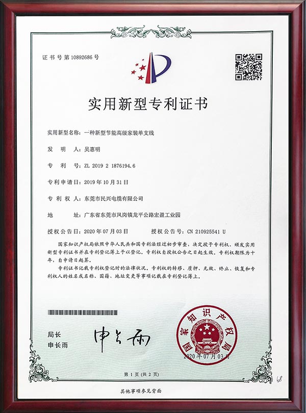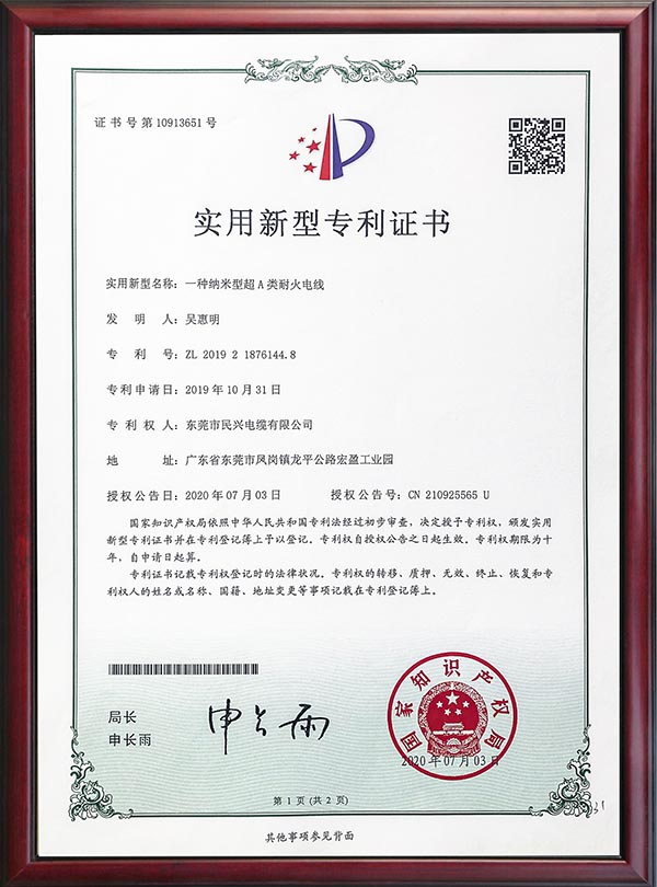 • 专利证书-一种农网改造用抗紫外线架空电缆