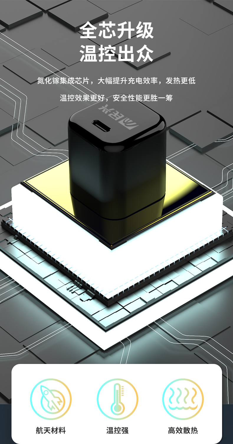 ꦗ 充能器原机GaN氮化镓集成型电子器件,拥有的更多的互转效应,同比升高充能传输率,效率高,散热处理,很安全能力更胜一筹。